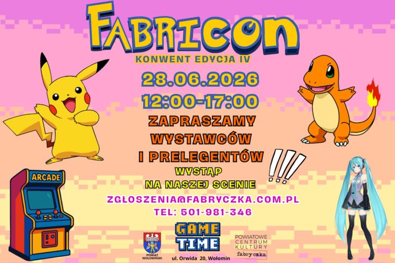 Fabricon 28.06.2026r. 12:00-17:00 Powiatowe Centrum Kultury „Fabryczka”, ul. Orwida 20,…
