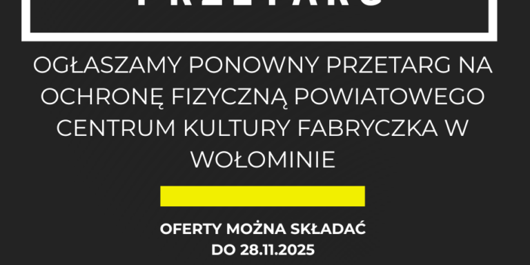 Ogłoszenie o ponownym przetargu na ochronę fizyczną Powiatowego Centrum Kultury „Fabryczka”! Powiatowe Centrum Kultury „Fabryczka”…